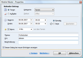 Für die Kalenderdaten steht ebenso die Tabellenansicht, als auch eine praktische Eingabemaske zur Verfügung. Ebenso können Terminserien festgelegt werden.